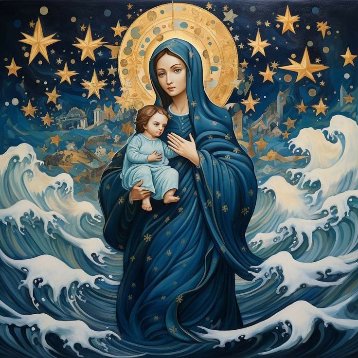 MaRia (sie wird häufig in blauen Gewändern dargestellt) ist das blaue MeeR, der unermessliche Lebensozean. Sie ist MèRe (französisch = Mutter), aber auch MeR, die Liebe (von altägyptisch mr =
